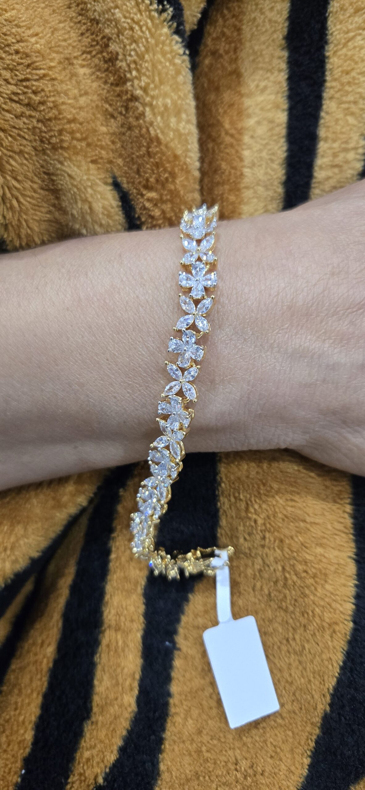 Be the first to review “Gold-Plated Floral Cubic Zirconia Bracelet | Dainty Wedding & Party Jewelry”